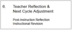 The model illustrates the instructional inquiry cycle used in the pilot study, beginning with diagnostic domain assessment and culminating in teacher reflection and instructional adjustment.